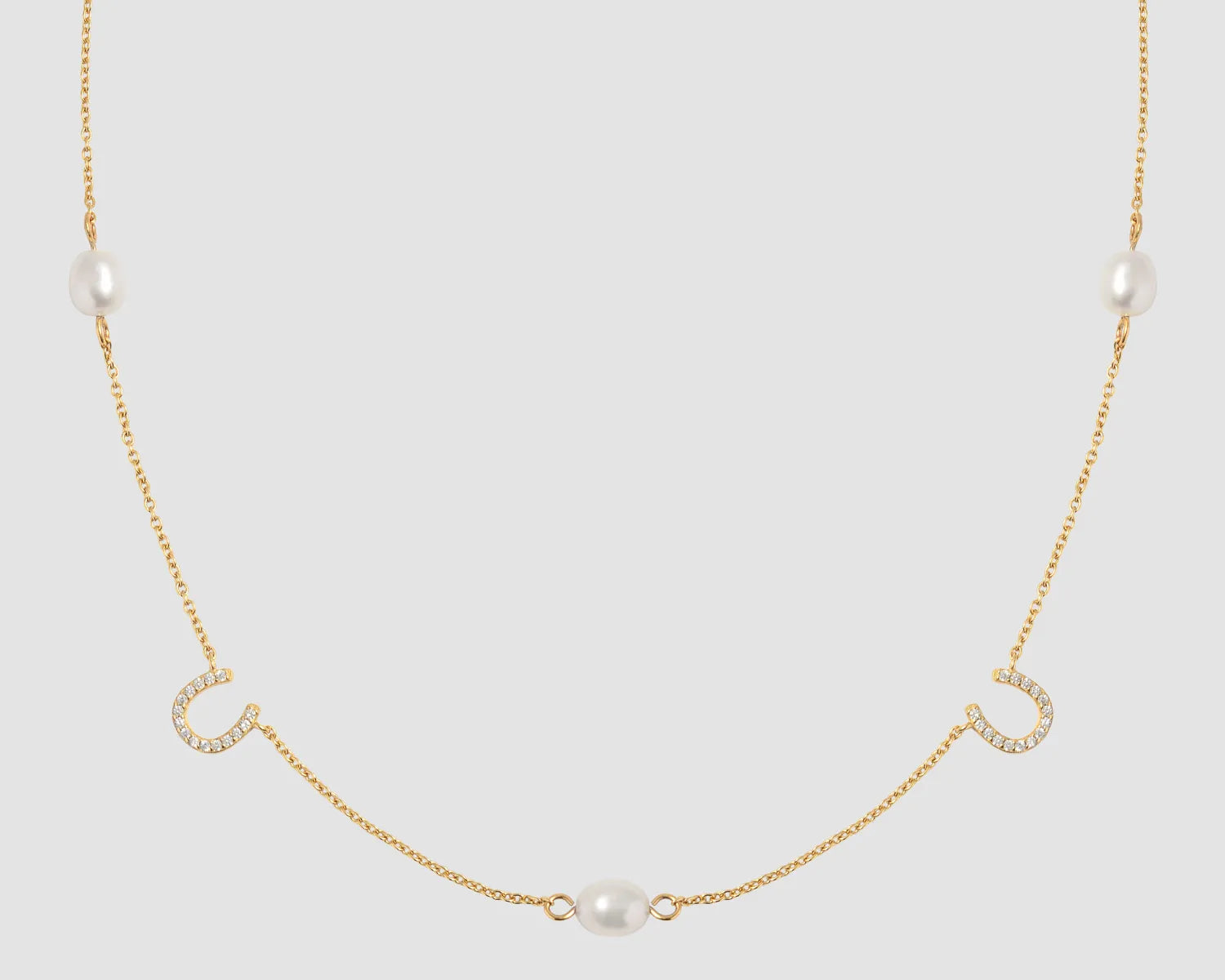 Lilly – Horseshoe perlehalskjede er laget i 925 sterlingsølv med 18 ct gullbelegg, dekorert med naturperler og hvite cubic zirconia.